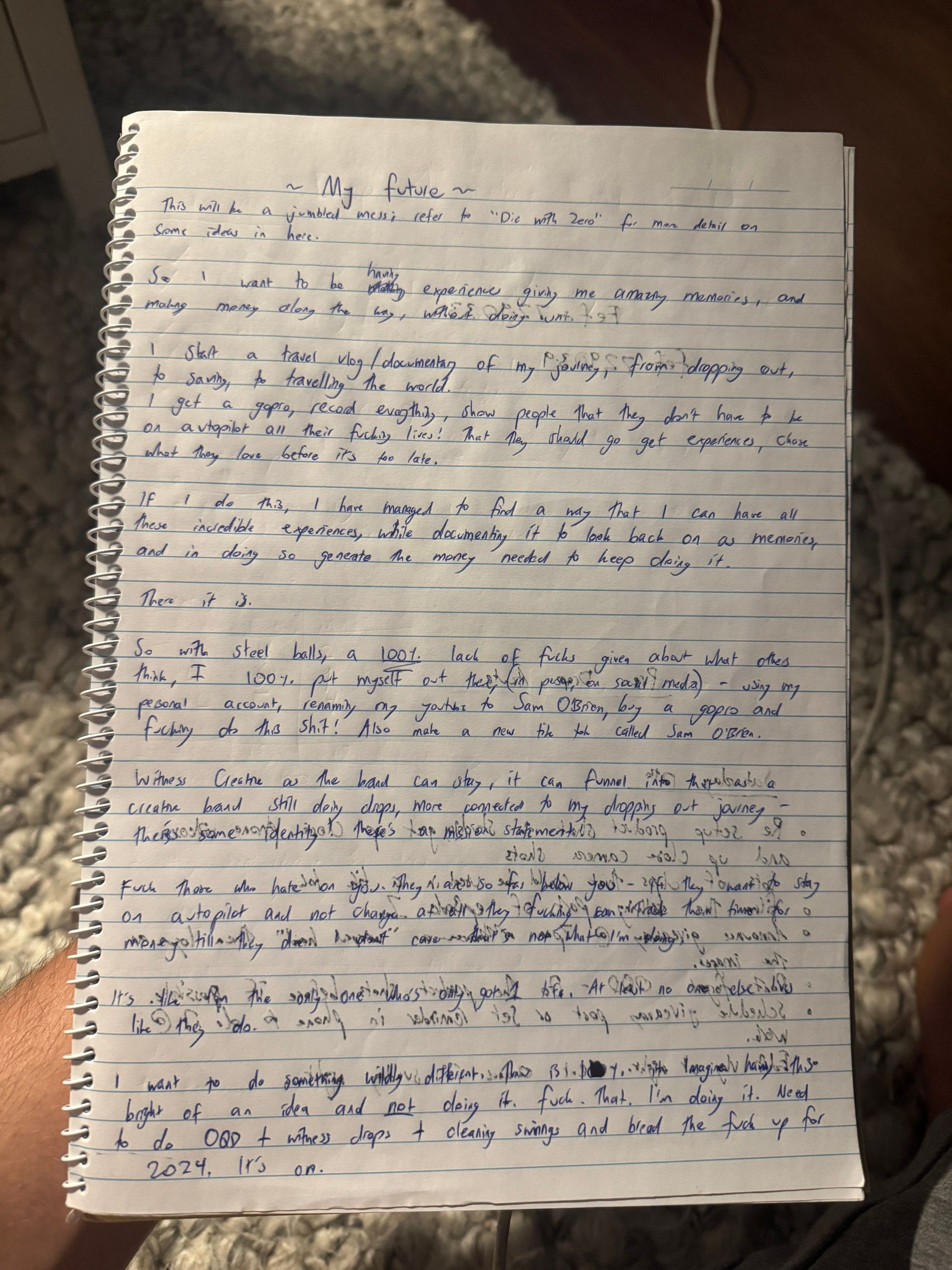 Here’s a photo of a letter from my younger self, upon the moment he realised he had an idea he had no choice but to act on. Don’t read the shitty photo — I transcribed it below :)